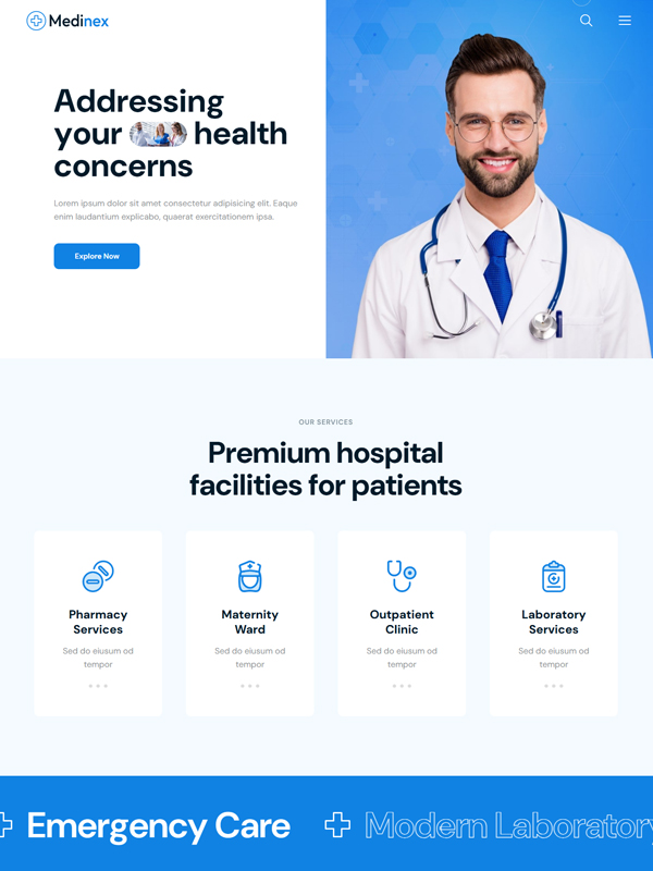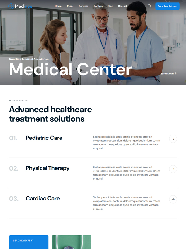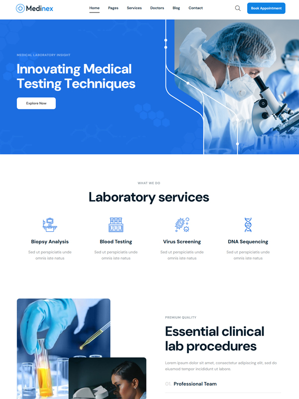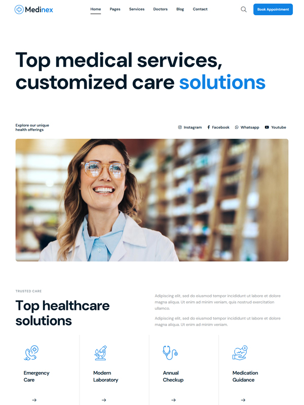 Medinex is a fresh and modern template for all types of Medical Services, Hospital,